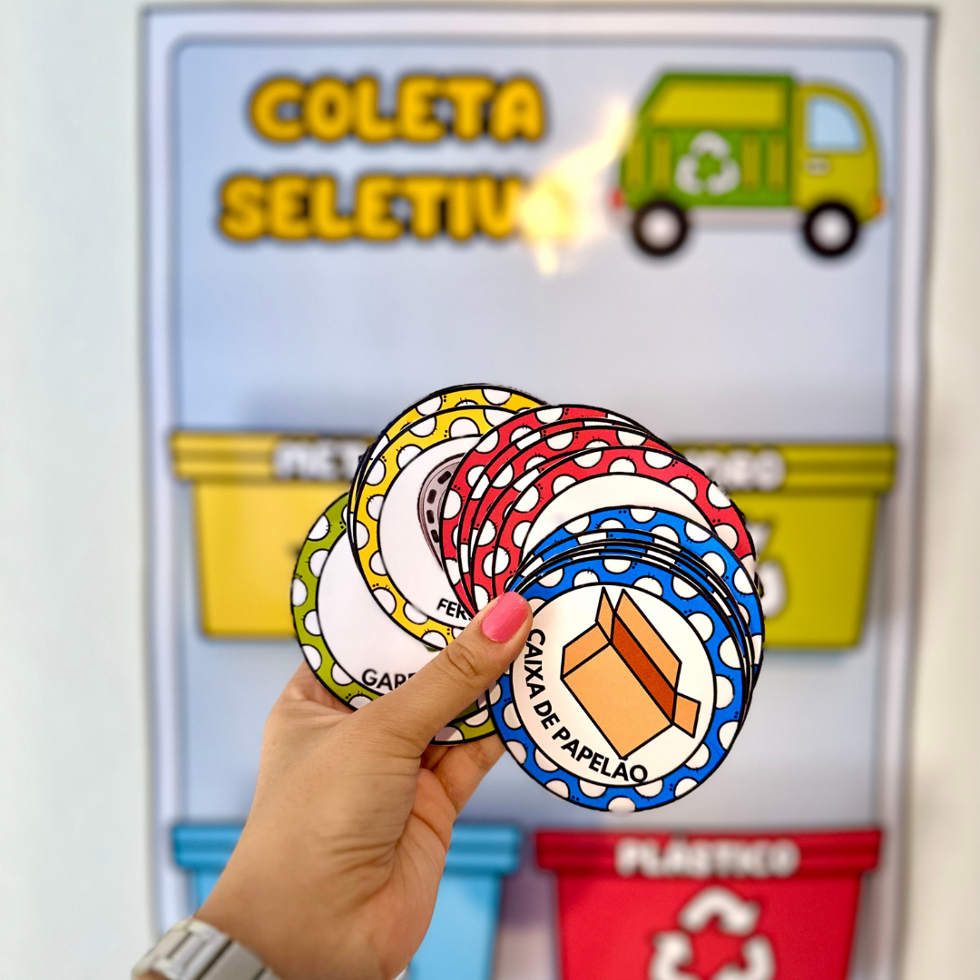 Cartaz Coleta Seletiva para trabalhar o tema Meio Ambiente com as crianças da Educação Infantil e dos Anos Iniciais do Ensino Fundamental.