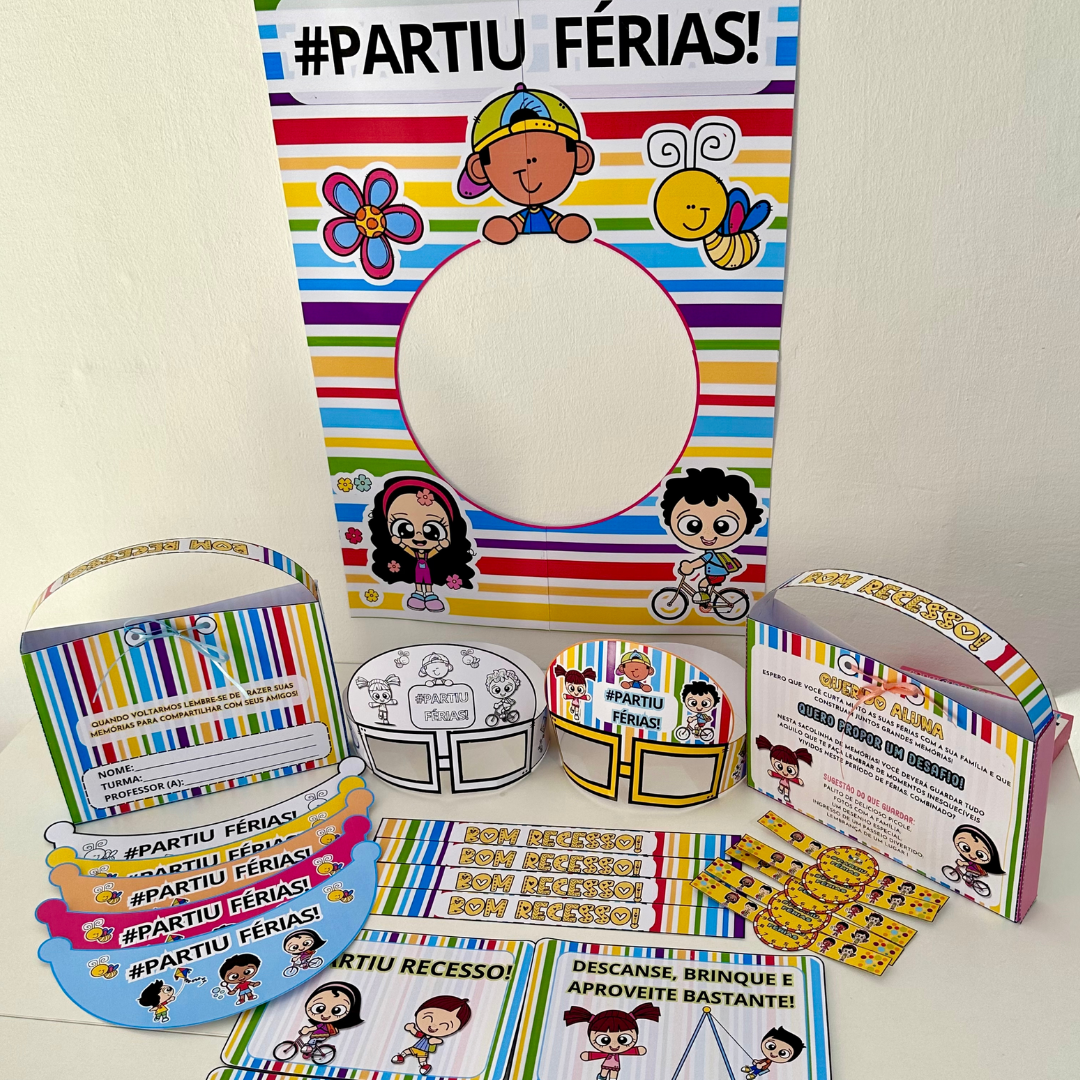 Kit Minhas Férias com vários materiais para tornar o momento do recesso divertido e lúdico!