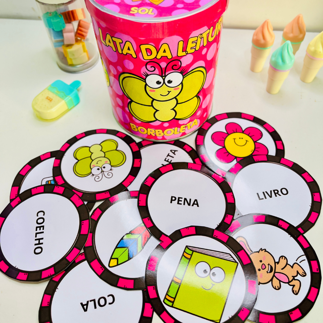 A Lata da Leitura é uma maneira divertida de estimular o aprendizado das crianças! Com cartões coloridos e cheios de imagens encantadoras, esse