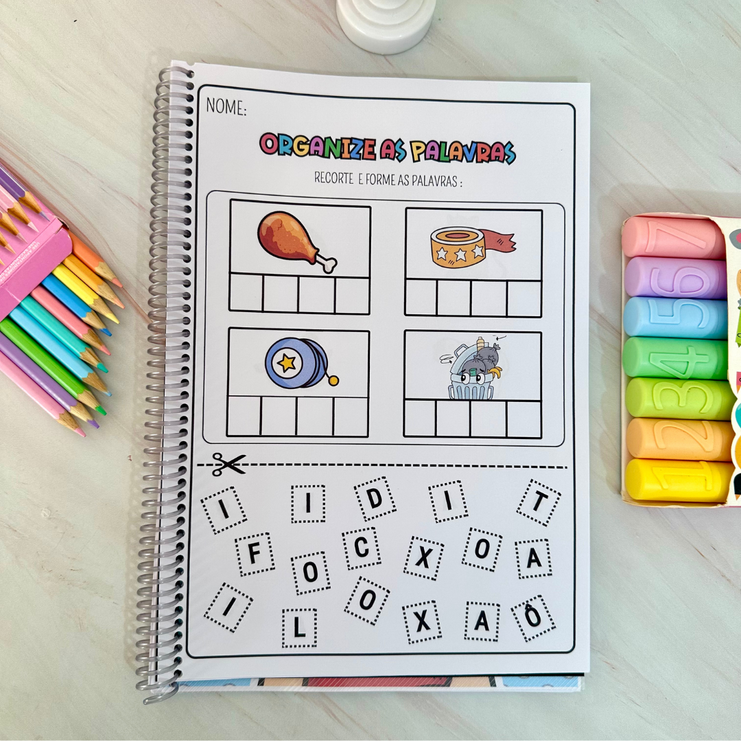 Nessa proposta a criança deve recortar e colar as letras corretamente para formar as palavras. As atividades vão na opção colorida e para colorir.