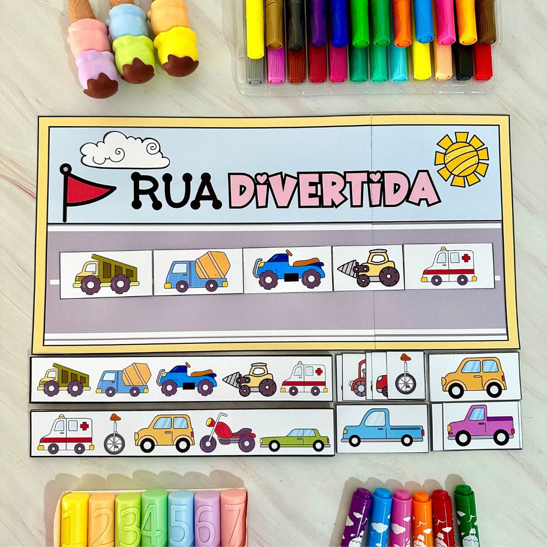 Utilizando figuras ilustrativas de diferentes veículos, este material permite que as crianças aprendam sobre regras de trânsito, tipos de transporte e segurança de forma lúdica e interativa. Além de promover a compreensão do ambiente urbano, o arquivo estimula a dinâmica motora, a concentração e o raciocínio lógico, tornando o aprendizado mais dinâmico e interativo.